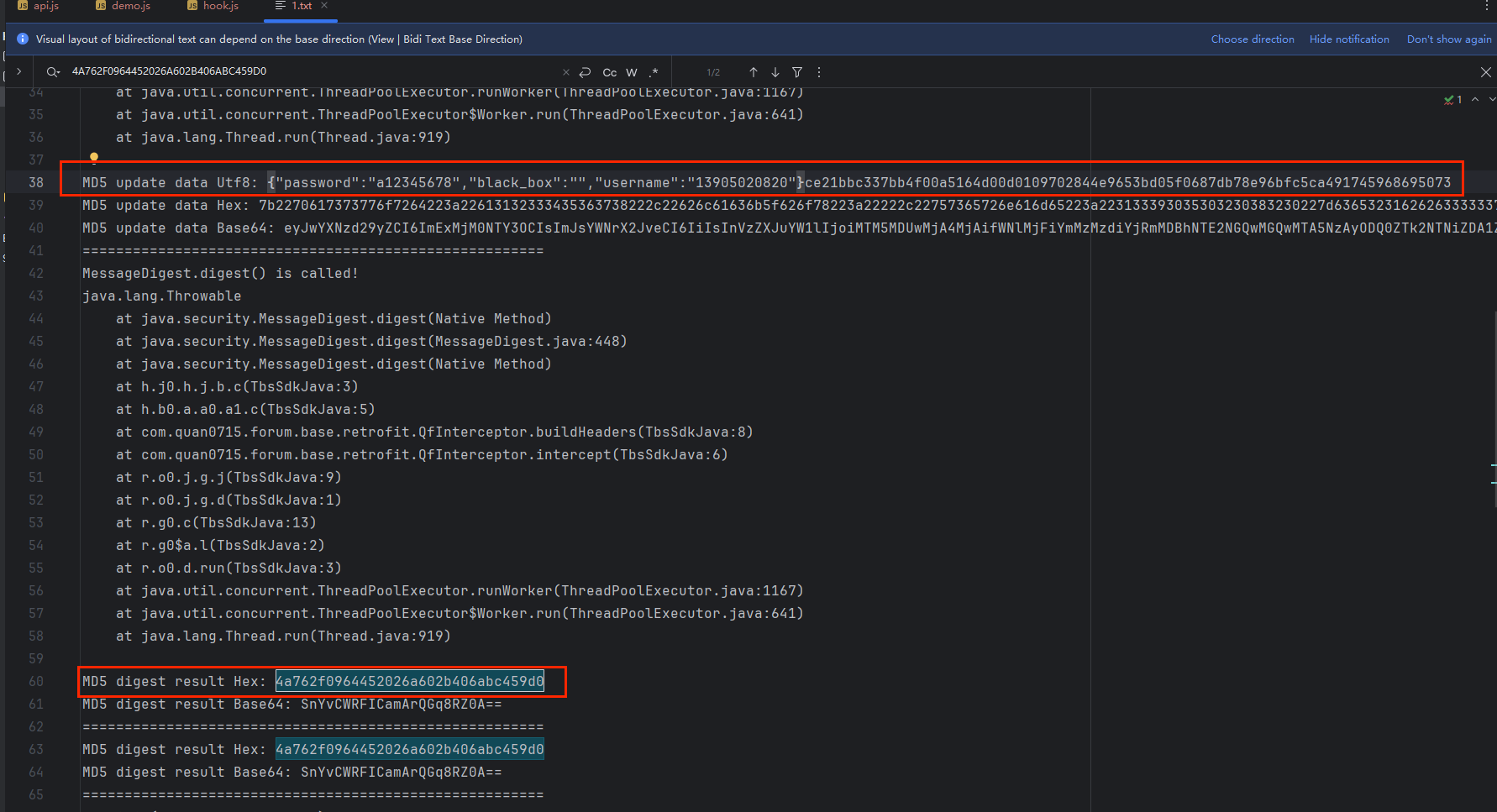 这种乱码,一般都是字节,我们可以hook一下getBytes一探究竟
